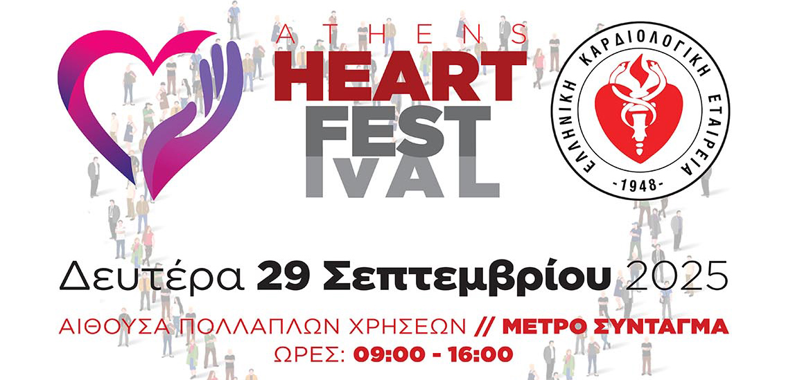 Το Athens Heart Festival 2025 αποτελεί τη σημαντικότερη κοινωνική δράση της Ελληνικής Καρδιολογικής Εταιρείας και διοργανώνεται για τρίτη συνεχόμενη χρονιά με αφορμή την Παγκόσμια Ημέρα Καρδιάς.